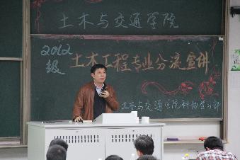 为进一步做好2012级土木工程专业分流工作,土木院于2014年4月22日下午6:30,在致用楼101举办土木工程专业分流宣讲活动。土木院沈扬副院长、岩土工程太阳集团所吴跃东老师、结构工程研究所沈德建老师、桥梁工程研究所谢发祥老师、隧道与城市轨道工程研究所沈才华老师受邀为土木院12级学生进行专业分流指导。