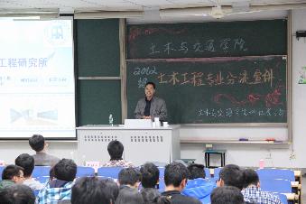 首先由桥梁工程研究所的谢发祥老师进行桥梁工程方向的专业介绍。谢老师从南京各大桥梁入手,详细介绍了桥梁工程研究方向、课程设置等,强调桥梁工程的重点在桥梁的养护与检测方面。结构研究所的沈德建老师以“奇妙结构,多彩人生”为主题进行了介绍,幽默风趣语言引来现场阵阵掌声。隧道与城市轨道工程研究所的沈才华老师从学科简介、学术交流、就业方向等方面进行了介绍,并强调地下空间有大的潜在价值。岩土工程的吴跃东老师就学科的历史沿革、人才培养、研究方向等方面讲述岩土工程的基本情况,并通过动画演示“桥头跳车”现象,更形象地为同学诠释了岩土工程的实际应用。最后沈院长从分流、教学、教务、管理、生活五个方面进行总结,既对2012级土木分流的总体规划做了介绍,也对一些分流细节做了解释,同时还对之前2012级同学在年度学院教学教务意见问卷调查中所提出的问题,和同学们进行了诚挚的沟通。老师们的生动讲解引起了同学们的热烈反响,纷纷提问,老师们也一一热情地作了回答,宣讲会持续了三个多小时。