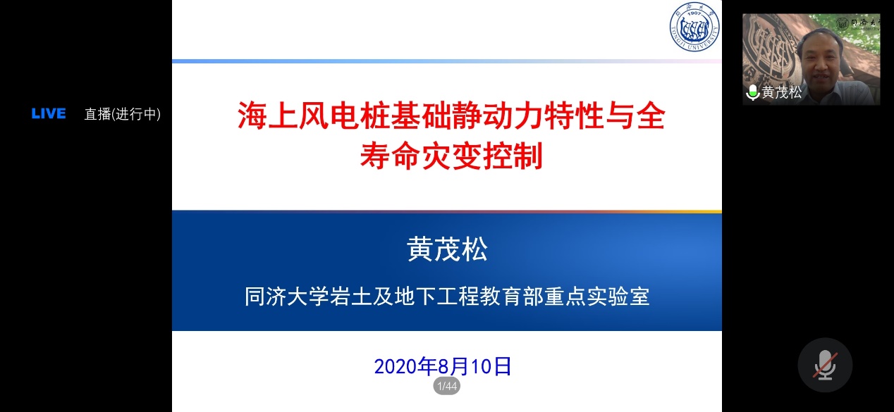 8月10日下午的两场学术报告由ok138cn太阳集团529副院长朱其志教授主持。同济大学黄茂松教授首先授课,作了题为《海上风电桩基础静动力特性与全寿命灾变控制》的报告。黄教授向学员们介绍了固定式海上风电基础的几种基础型式,通过工程案列讲述了当前海上风电基础面临的挑战,然后详细讲解了黏质海床中大直径单桩的水平静力承载特性和水平循环加载特性,最后讲解了一些关于桩基础海上风机振动控制的内容,介绍了避免风机共振的设计理念。报告结束后的互动环节中,学员们踊跃发言,针对大家提问较多的桩土之间的相互作用以及海上风机基础液化等方面的问题,黄教授进行了非常细致的回答,得到了学员们热烈的回应。