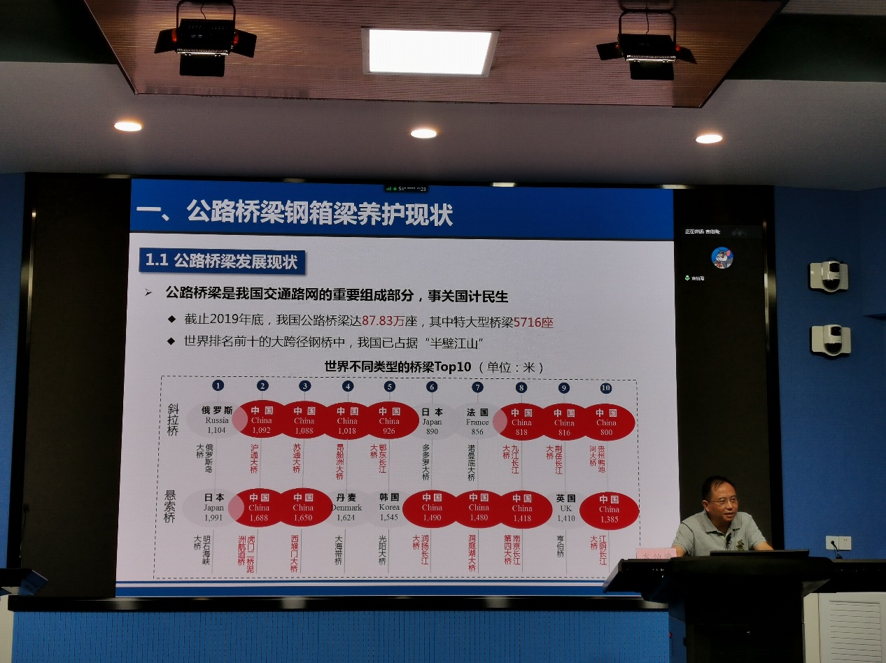 第一天的最后一位授课专家是ok138cn太阳集团吉伯海教授,他的授课题目是《公路桥梁钢箱梁养护技术与挑战》。吉教授介绍了我国公路桥梁的发展现状,指出钢箱梁疲劳问题已经成为大跨公路钢桥钢箱梁养护的关键瓶颈问题。由于桥梁养护与车辆畅行矛盾日益突出,检测评估不准,导致难以及时发现裂纹并科学制定养护策略。吉教授从疲劳荷载特征、疲劳强度指标、裂纹扩展规律、耦合作用影响等四个方面对钢箱梁养护关键技术进行了理论研究,并向大家介绍了疲劳裂纹检测技术、裂纹评估方法、疲劳开裂预防技术、疲劳开裂修复技术等特色技术。同学们对吉教授的讲座反响热烈,提出了钢箱梁养护技术与现有的健康监测技术的区别等专业问题,吉教授也一一作了详细的解答,赢得了同学们的掌声。