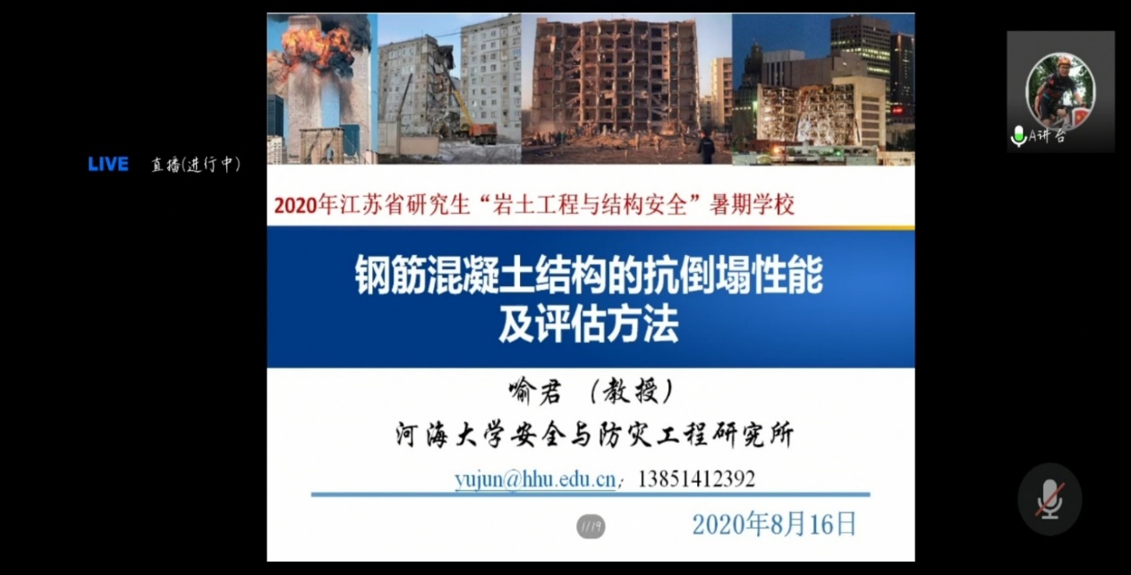 8月16日是2020年江苏省研究生“岩土工程与结构安全”暑期学校的第七天。今天的学术报告由ok138cn太阳集团529陈育民教授主持。