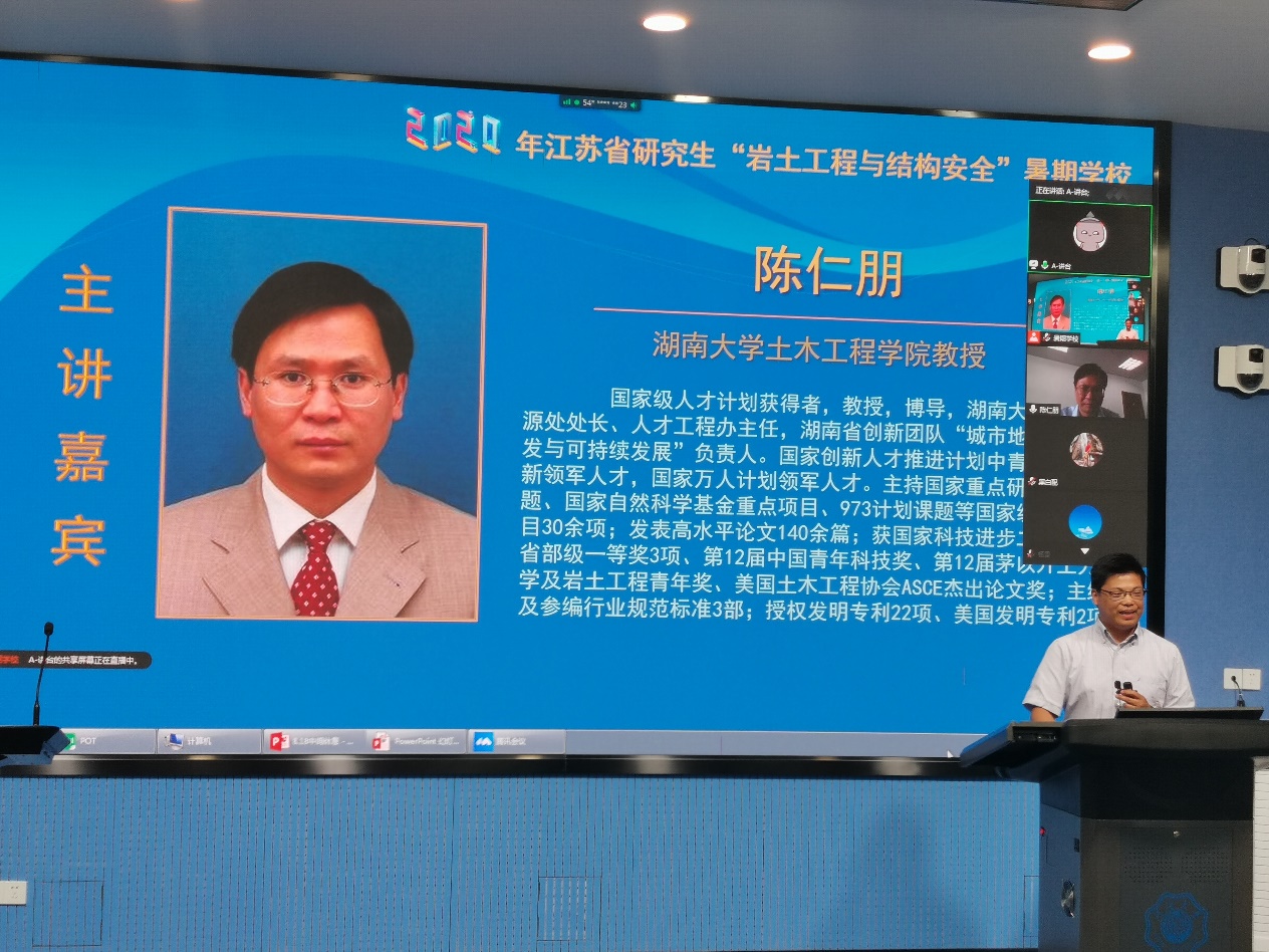8月18日是2020年江苏省研究生“岩土工程与结构安全”暑期学校的第九天。当日的学术报告由ok138cn太阳集团529陈育民教授主持。