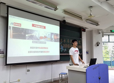 接着,雷兰清同学向大家讲解了自己的创新创业课题“地下管道—全生命周期一体化解决方案”。他从管道问题的危害出发,通过研究提出了组合式的解决方案,向同学们展示了核心技术动画以及该课题的实践案例和服务对象,充分体现了课题的社会效益。雷兰清同学向大家提出了三点建议:第一,要注重培养自己的兴趣,从兴趣出发,选择适合自己的研究课题;第二,要多注意观察社会的痛点和发展趋势,从中发现研究方向;第三,挑选适合自己的导师,有助科研的顺利进行。