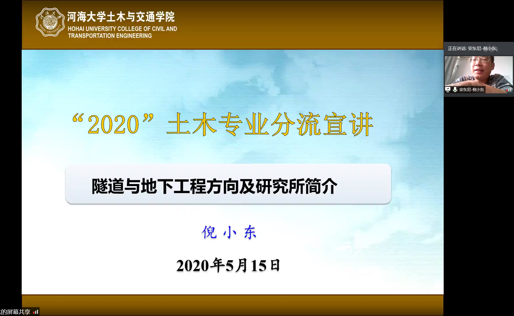 最后,由倪小东老师为同学们介绍隧道与地下工程。老师首先介绍了隧道与地下工程方向本科阶段的培养方案,并通过讲解地下工程的分类等方面详细介绍了我国隧道与地下工程的发展现状。紧接着倪小东老师又介绍了隧道与地下工程研究所的师资情况、重点研究方向和主要的科研课题。倪小东老师还分析了同学们最关注的隧道方向人才培养的成果以及就业形势。通过老师的介绍,同学们对隧道工程有了更加全面深刻的了解和认识。