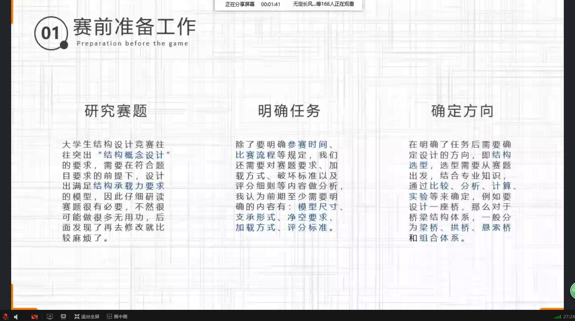 本次微讲堂,两位主讲人结合自身经历,向同学们具体深入地介绍了全国大学生结构设计竞赛。相信同学们参与此次讲座之后一定会收获满满,在未来参加结构设计类竞赛时能够吸取经验,总结教训,创造更加灿烂辉煌的成绩。