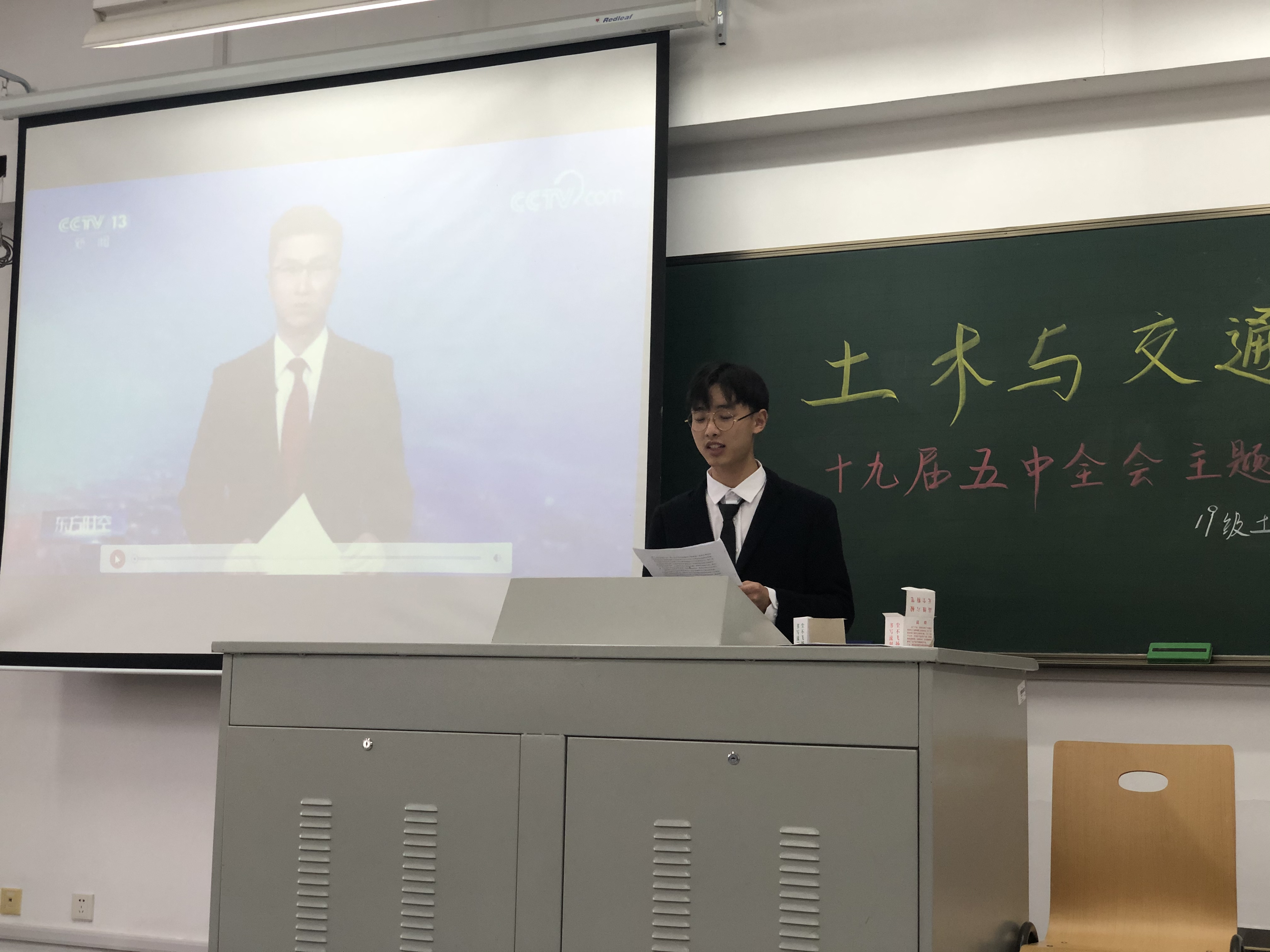 2020年11月18日15:50,ok138cn太阳集团5292019级土木四班在致用楼326开展了学习第十九届五中全会精神主题班会。ok138cn太阳集团529院长高玉峰、班导师闵凡路老师、辅导员王璐老师及19级土木四班全体同学参与了本次班会,班会由温紫晗同学主持。