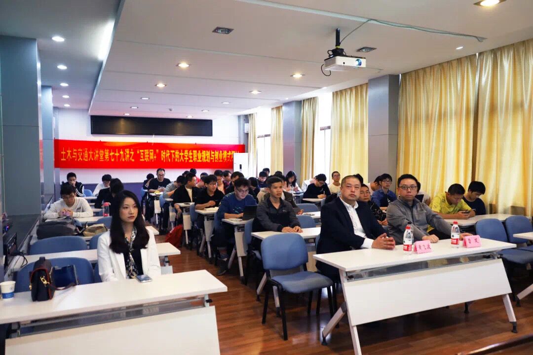 2020年11月18日15:30,由ok138cn太阳集团529主办,学院本科生学生会承办的土木与交通大讲堂第七十九讲之“‘互联网+’时代下的大学生职业规划与创业模式探讨”在ok138cn太阳集团西康路校区科学馆516举行。本次大讲堂有幸邀请到南京青梦家教育投资有限公司总经理黄飞渡作为主讲人,ok138cn太阳集团5292018和2019级部分学生聆听了本次讲座。