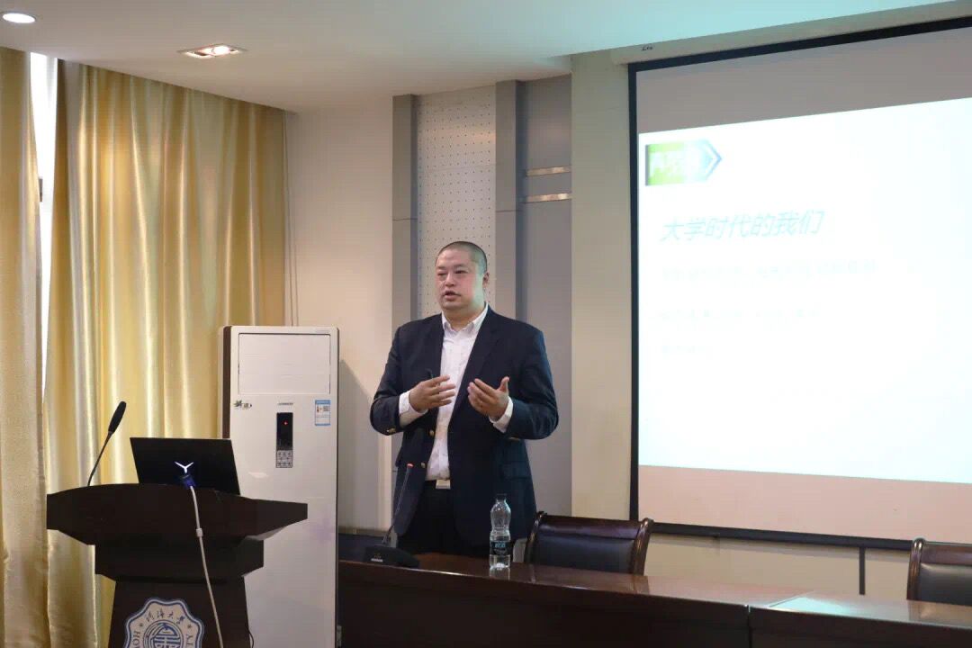 首先,黄飞渡总经理向同学们强调了大学阶段学习成绩的重要性,同时根据自己的大学生活经历,从时间安排、未来规划、学习社交三个方面向同学们提出了一些建议。