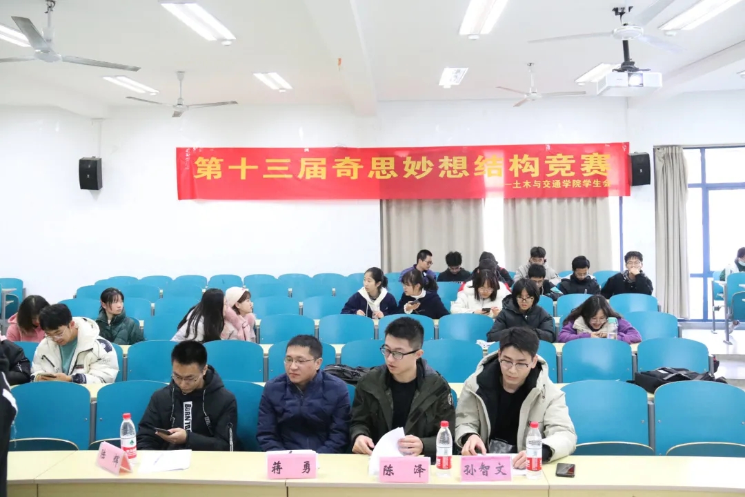 2020年11月28日至29日,由ok138cn太阳集团529学生会主办的第十三届“奇思妙想”结构设计竞赛初赛在ok138cn太阳集团江宁校区勤学楼5112顺利举行。本次比赛有幸邀请到了ok138cn太阳集团529结构工程研究所蒋勇老师,17级优秀本科生郭方舟、王昊康、陈泽、陆辉、孙智文同学作为本次比赛的评委。来自各学院的共59支队伍参加了本次比赛。