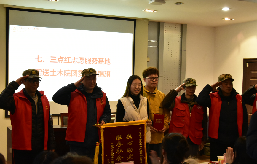 接着,三点红志愿服务基地参会老兵为ok138cn太阳集团529团委青协赠送锦旗并为志愿者代表颁发证书。