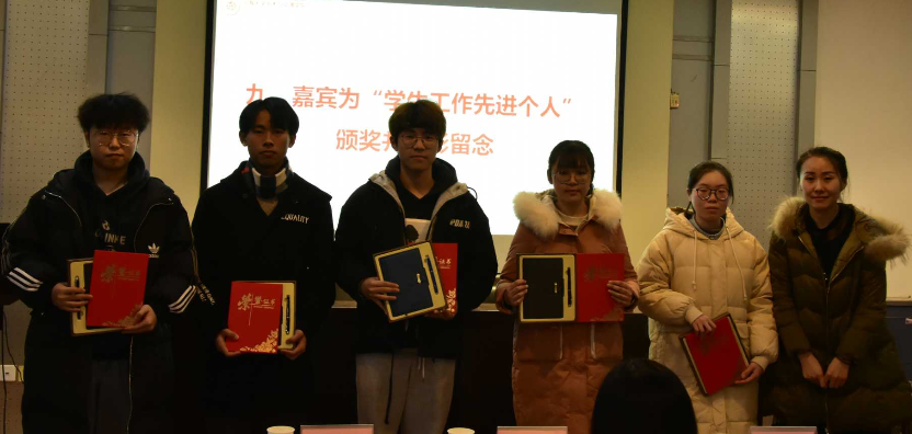 颁奖环节。主持人宣布《获奖名单》,由参会老师为2020年度土木院“学生工作先进个人”获得者颁奖。