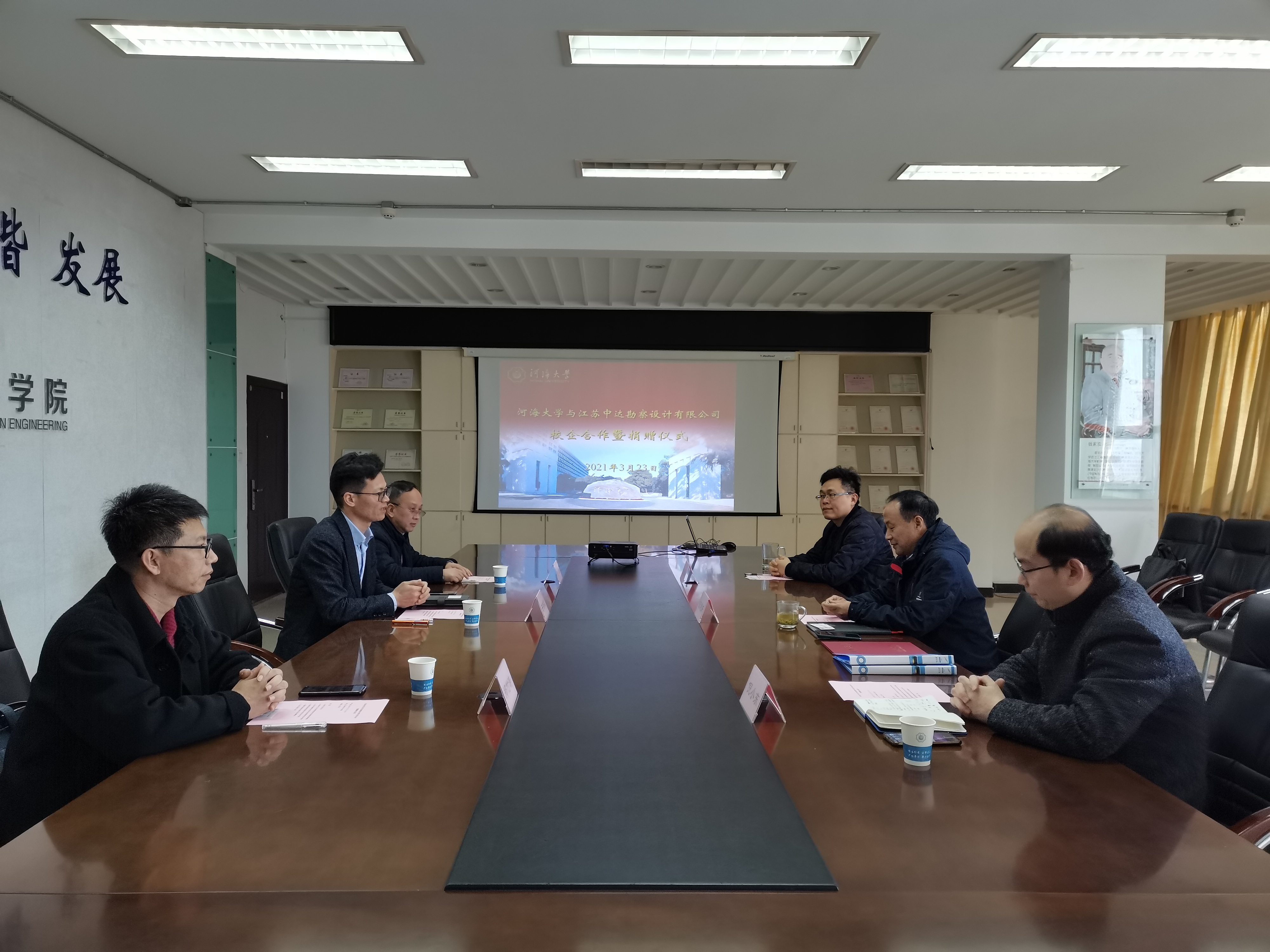 3月23日,江苏中达勘察设计有限公司向我校捐赠10万元,用于资助ok138cn太阳集团529事业发展。ok138cn太阳集团529党委书记汪建新,江苏中达勘察设计有限公司总经理符新军、总工程师刘靖、副总经理郑付涛等出席捐赠仪式。