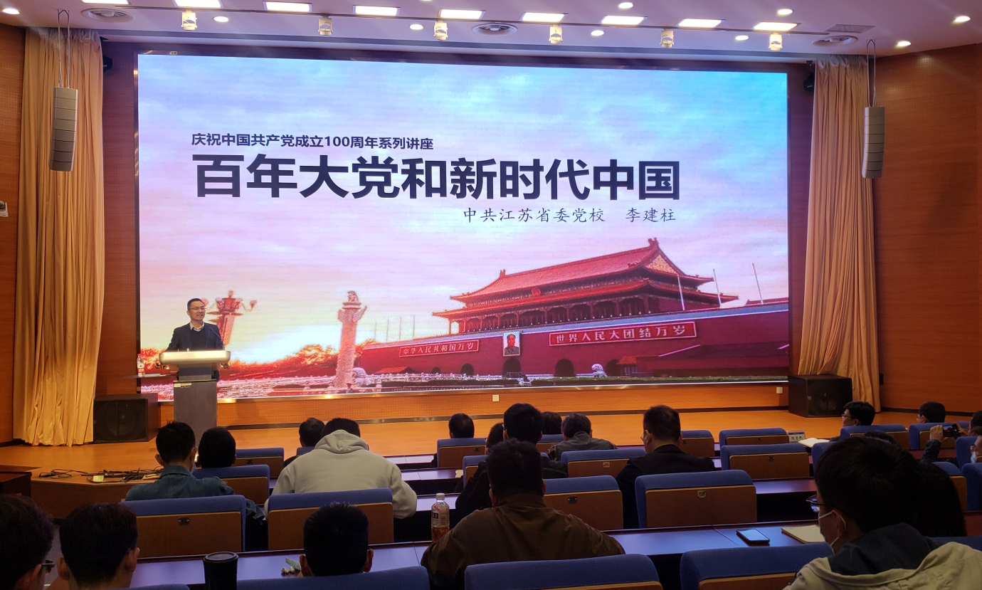 3月29日下午,ok138cn太阳集团529党委邀请中共江苏省委党校哲学教研部李建柱教授作党史学习教育专题报告。学院党委委员、教师党员和学生党员代表130多人聆听了报告。院党委书记汪建新主持报告会。