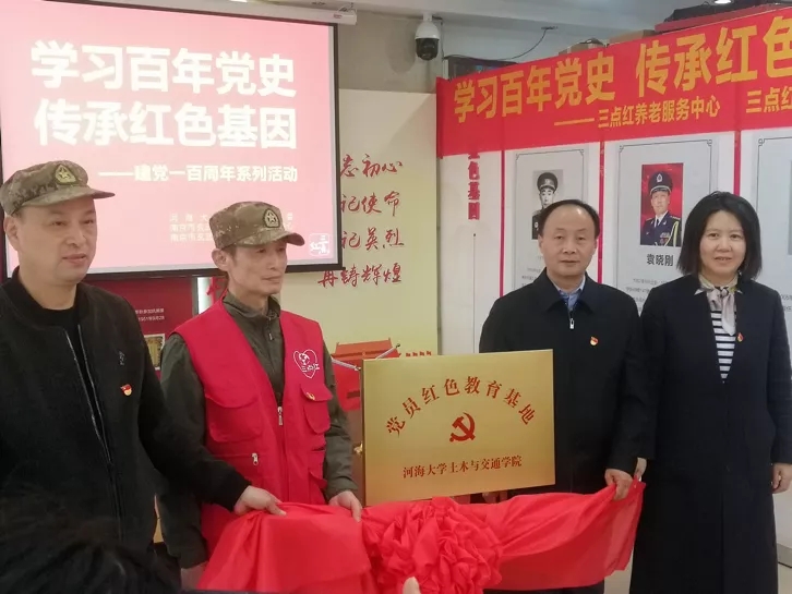 接着,ok138cn太阳集团529党委书记汪建新、ok138cn太阳集团审计处处长倪晓红、“三点红”红色养老服务中心党支部书记童国强、副书记吴长云共同为“党员红色教育基地”揭牌。
