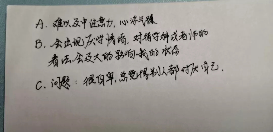 交通二班组织同学们在纸条上匿名写出心中的困惑和烦恼,邀请班级其他同学化身“心理咨询师”,运用心理健康课上学到的知识为有困惑的同学支招,在轻松有趣的氛围中将理论和实践相结合,用另一种方式让同学们打开心扉,跳出固有思维,以更积极的态度去面对困难,拥抱生活。
