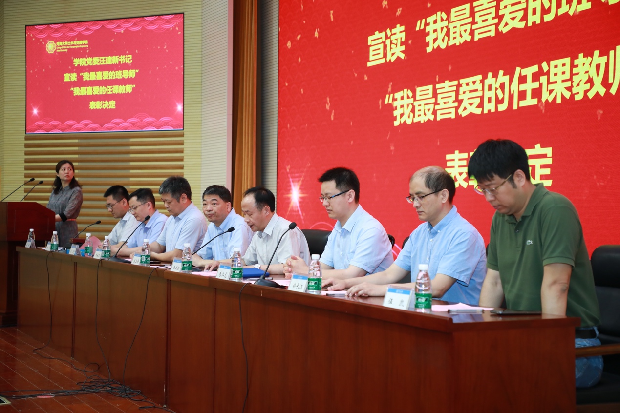 院党委汪建新书记宣读《关于公布第九届ok138cn太阳集团529“我最喜爱的任课教师”和“我最喜爱的班导师”评选结果的通知》,学院副院长周继凯教授宣读“建工结构奖助学金”获奖名单,学院副院长朱其志教授宣读校优秀毕业生名单,学院副院长刘云副教授宣读“基层就业奖学金”获奖名单。