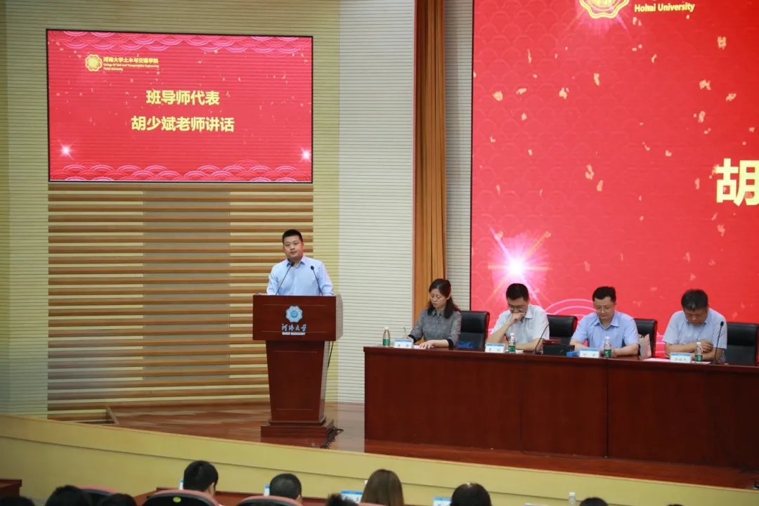 班导师代表胡少斌老师发言。胡老师首先感谢了同学们对他工作的肯定,分享了作为班导师的感受。临别之际,胡老师希望同学们在未来的工作中能够有坚韧不拔的精神,注重细节,端正态度,在人生的画卷上尽情挥洒泼墨。