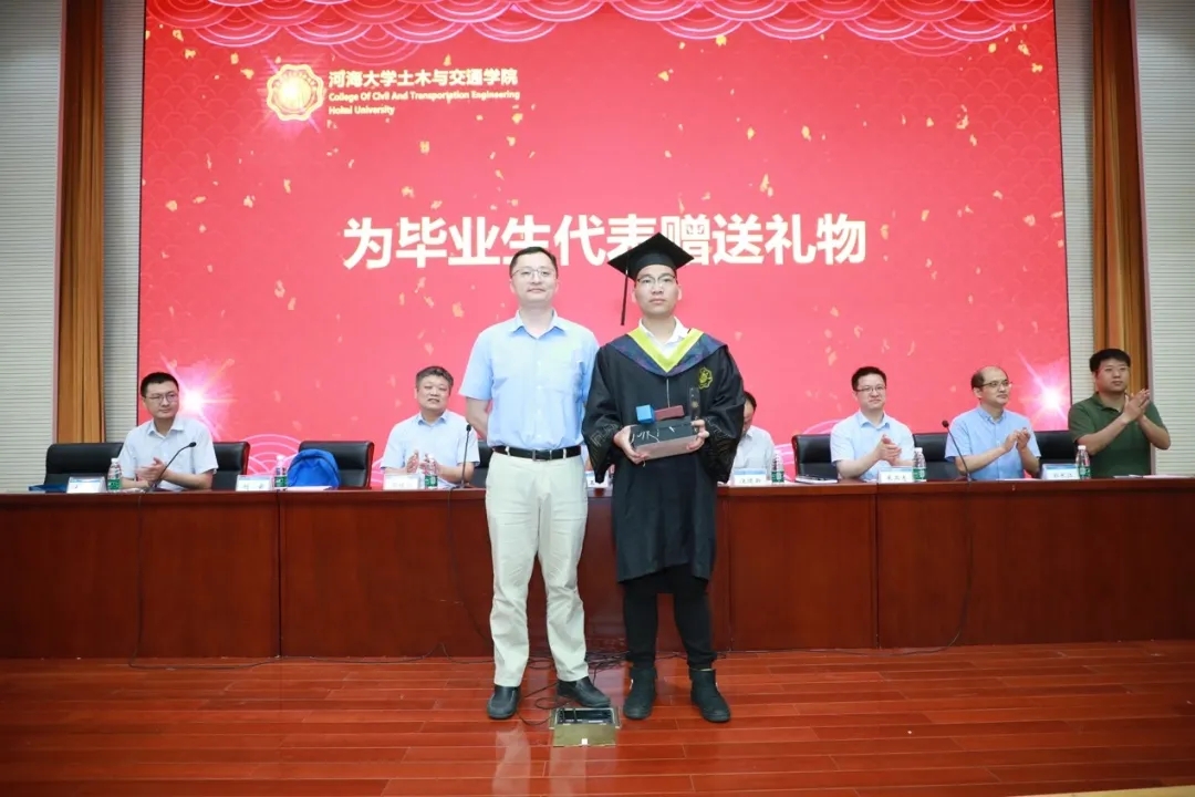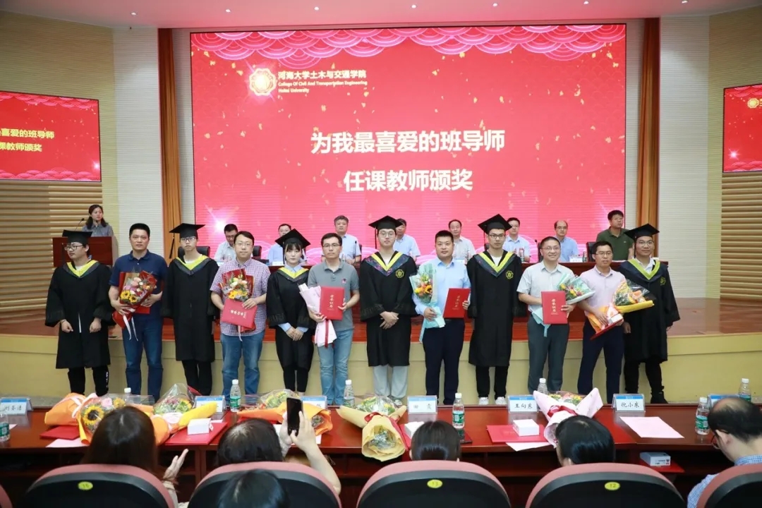 学生代表为“我最喜爱的任课教师”和“我最喜爱的班导师”获奖老师颁奖、鲜花、赠送礼物,学院老师为“建工结构奖助学金”获奖学生颁奖,副院长刘云副教授为学生代表赠送毕业礼物。
