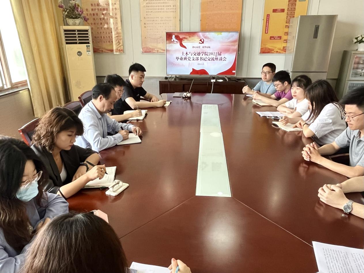 5月25日,学院党委召开2022届毕业班党支部书记座谈会,12名毕业班党支部书记参加交流和座谈。学院党委书记汪建新、组织员徐冉、辅导员李倩参加了座谈会,会议由徐冉主持。