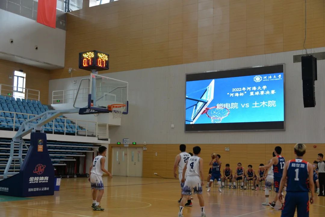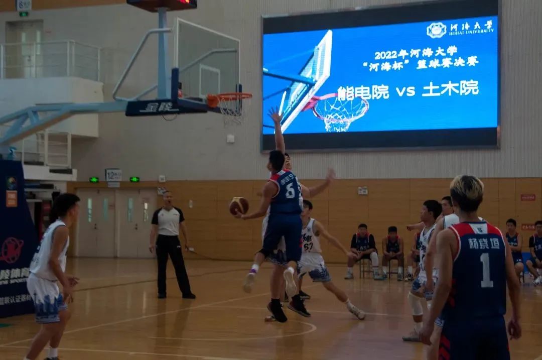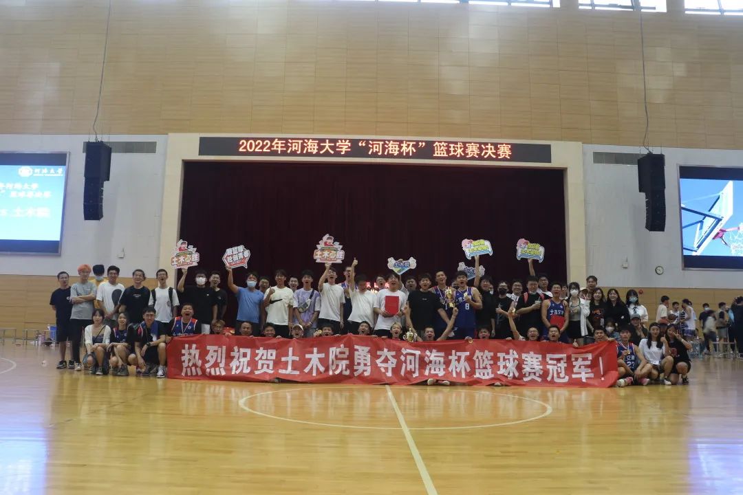 2022年5月22日15:00,“河海杯”篮球赛决赛开战,在经过激烈交锋之后,土木院篮球队以56-55的比分战胜能电院篮球队,取得决赛胜利,拿下本届“河海杯”篮球赛冠军。