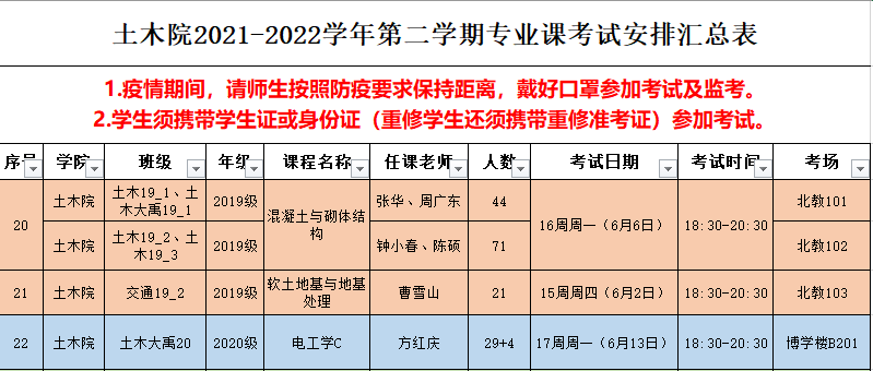 土木院2021-2022-2学期专业课考试安排(第五批)