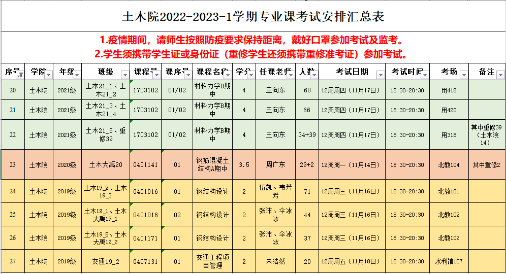 土木院2022-2023-1学期专业课考试安排(第三批)