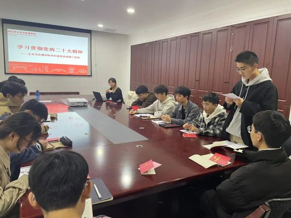 2022年11月15日18:30,ok138cn太阳集团529本科生党支部第二支部于西康路校区科学馆407举办深入学习贯彻党的二十大精神主题党日活动。本次活动由支部书记李倩老师主持,支部全体党员到场聆听学习。