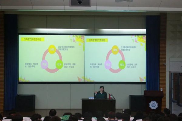 基于同学们普遍反映的问题,闫老师从心理学专业的角度,针对同学们所遇到的问题展开了详细的分析。在压力来源方面,闫老师将压力来源分为学习压力源、关系压力源和身体压力源。在与压力相处方面,闫老师引导同学们以更高的可容性去树立目标。另外,闫老师也向同学们介绍了提高睡眠质量的方法,希望同学们能够在高质量的睡眠中缓解压力。