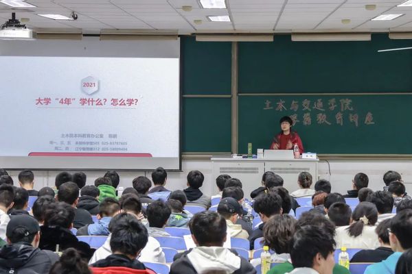 随后,陈老师展示了2018级同学们的毕业情况,并向大家分析介绍了其中反映的关于大学学习生活的四个问题:一、学生学习能力不足;二、学生对待学业态度欠缺;三、学生时间分配不科学;四、学习能力自我认知存在问题。接下来,陈鹏老师展示了土木工程与交通工程四年学习的必修科目,以此告诉同学们课程逐渐加难加深,告诫大家大学期间应继续保持端正的学习态度。