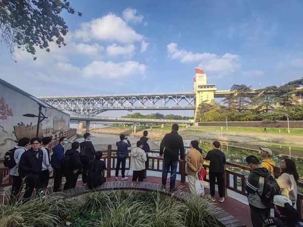 随后,老师和同学们登上桥下的玻璃栈道,近距离感受南京长江大桥带来的震撼。放眼望去,大桥似巨龙般横卧在长江之上,苍劲有力。