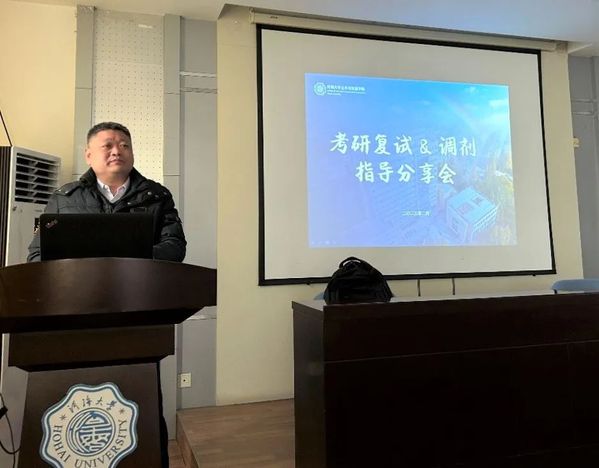 周院长就学院招考学硕、专硕情况进行介绍,同时建议同学们多关注各类调剂信息,提前和调剂院校老师联系,抓住机会,争取考研上岸。周院长希望同学们先思考后做规划选择,选择后能够一心一意、脚踏实地地为自己做出的选择负责。