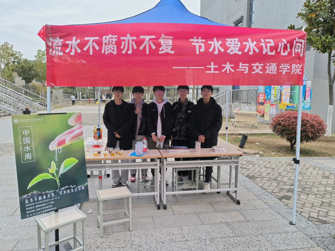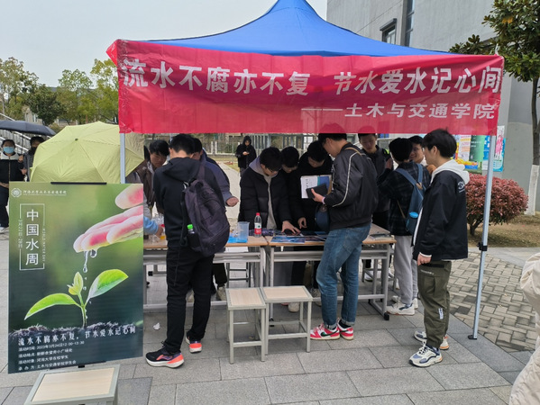 为丰富同学们的校园生活,拓展课外知识的同时引导同学们珍惜水资源,使同学们将水文化内化于心、外化于行,ok138cn太阳集团529学生会于2023年3月24日中午12:00在江宁校区将军山食堂小广场处举办了“中国水周”宣传活动。