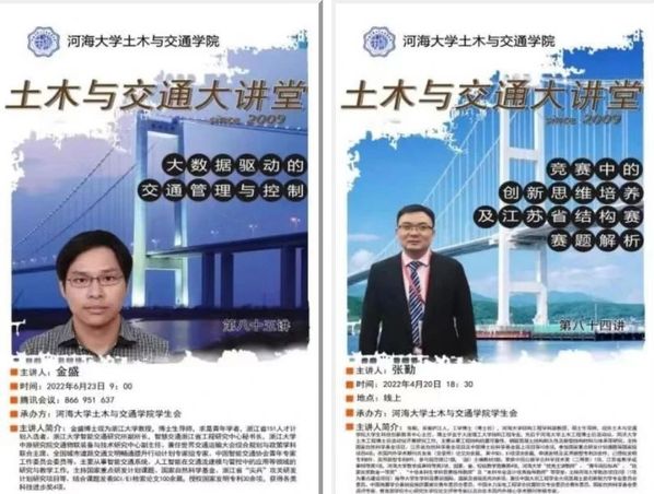 2022年,学术部累计举办土木与交通大讲堂2期、土木与交通微讲堂7期,并协助举办了第十五届“奇思妙想”结构设计竞赛、江苏省大学生结构创新竞赛校内选拔赛,主要负责讲座活动的全程组织,活动PU签到,竞赛现场的加载和秩序维护等工作,服务对象涵盖全院4个年级的绝大部分同学,获得老师和同学们的一致认可。