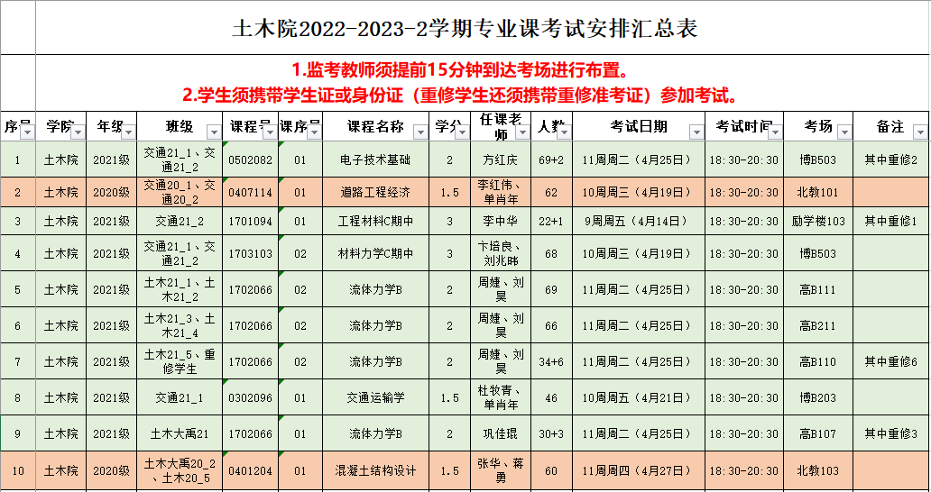 土木院2022-2023-2学期专业课考试安排(第一批)