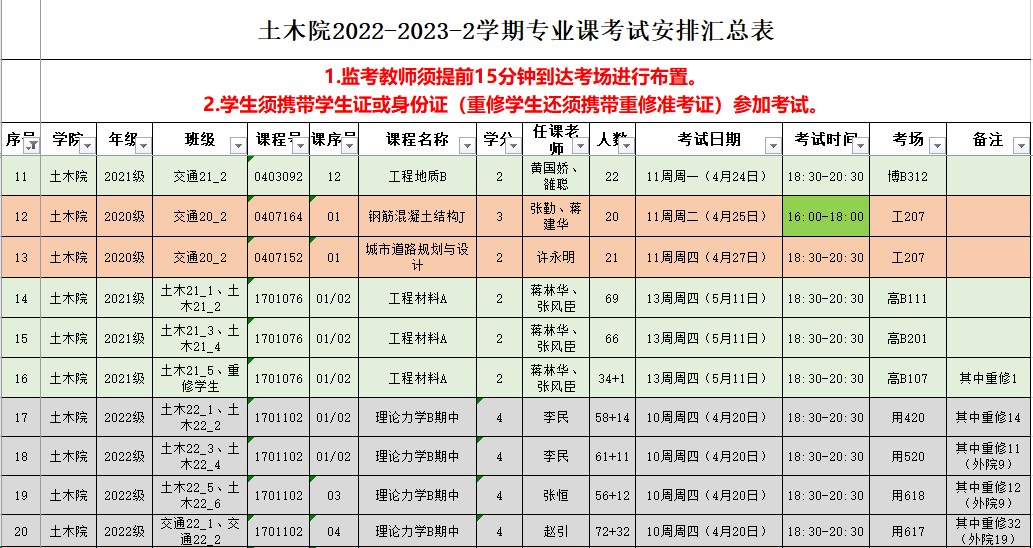 土木院2022-2023-2学期专业课考试安排(第二批)
