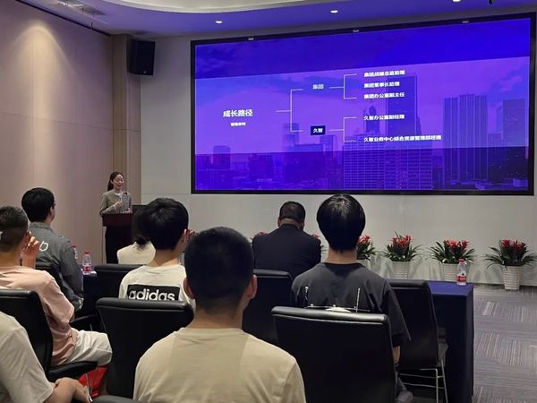 首先,同学们参观了久大产业投资集团的展厅。久大集团人力资源部陈科瑾经理向同学们介绍了久大集团发展历程、集团使命、集团荣誉。久大是集工程建设、智慧城市、产业创新综合体、城市更新、资本投资、基金运营、酒店管理等多个业态于一体的大型综合性民营企业集团。