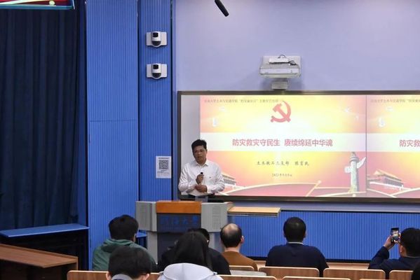 上午八点半,土木教工三支部书记陈育民教授在科学会堂101为党员师生们带来了一堂内容丰富的主题党课。陈老师结合个人工作经历,从“全国防灾减灾日”、“灾害与土木工程”、“防灾减灾思政教学”以及“土木人的责任和使命”四个部分为党员师生讲述了个人与各种灾害的关联,明确了土木师生应当担当的责任和使命。