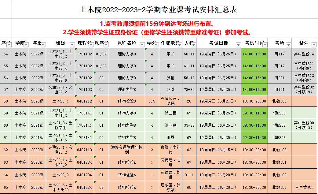 土木院2022-2023-2学期专业课考试安排(第七批)