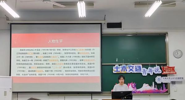 接着,主讲人陈娴讲述了张謇的红色事迹。张謇是中国近代实业家、政治家、教育家,也是河海工程专门学校(今ok138cn太阳集团)的创办者。秉持着“实业救国、教育救国”的信念,张謇一生创办了20多家企业、400多所学校,为中国近代民族工业的兴起和教育事业的发展作出了宝贵贡献。