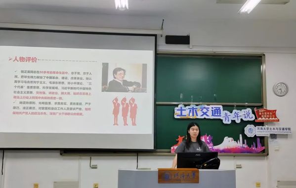 接着,主讲人姚梓芮讲述了钱正英的红色事迹。钱正英是我国工程院院士、水利水电专家,也是华东水利学院(今ok138cn太阳集团)首任校长。她曾主持研究、制定了一系列关于黄河、长江、淮河、海河等流域的治理和规划纲要,为大江大河的管理做出了杰出贡献。此外,钱正英还领导了三峡工程建设的可行性论证工作,并在密云水库、长江葛洲坝水利枢纽等工程建设中多次解决了重大技术难题。