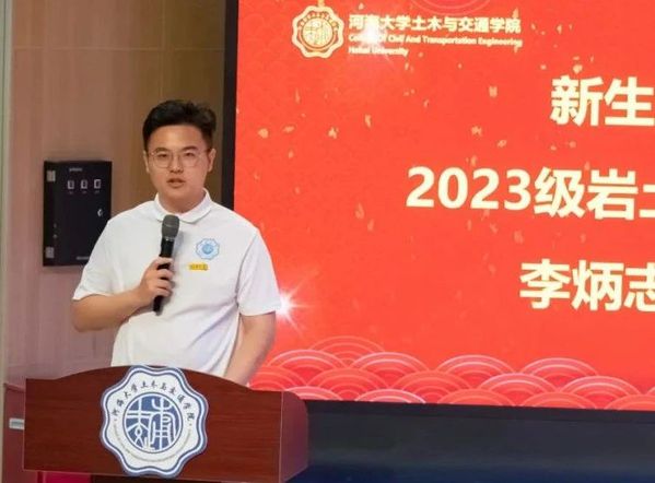 新生代表,2023级岩土工程专业李炳志同学发言。