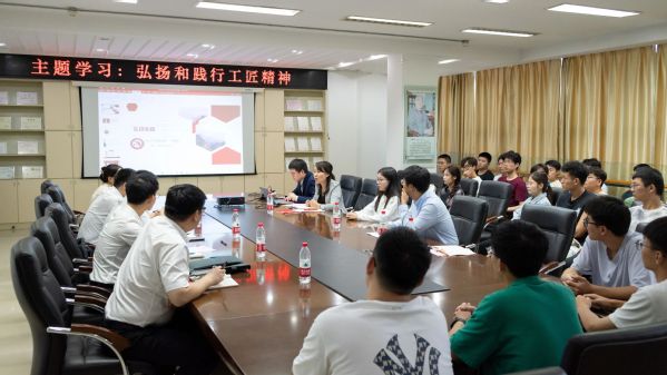 座谈交流结束后,学院组织开展了主题学习活动。中共江苏省委党校科学社会主义教研部李潇翔老师以弘扬和践行工匠精神为题展开授课,向各位领导老师和同学们讲述了工匠精神的内涵、弘扬和践行工匠精神何以需要以及路径。