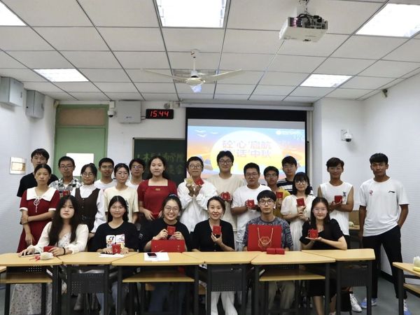 王书记对参会学生积极进取的态度给予了充分肯定,希望新生始终秉持着我校“艰苦朴素、实事求是、严格要求、勇于探索”的校训。此外还特别提出大学时期是每个人的价值观、人生观、世界观形成的关键时期,希望每个同学都能在脚踏实地学习的同时,感受、内化、传递世界的美好,展现新时代好青年的精神风貌。最后,王书记为参会同学发放月饼,大家合影留念。