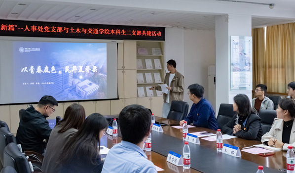 汤鸣鸿副部长对土木院本科生二支部的建设情况以及共建模式给予了肯定,对进一步组织开展好共建活动、加强师生互动交流,提出了建议。她指出,青年党员同志作为学生中的优秀代表要珍惜自己的党员身份,在学生群体之间做好先锋模范带头作用,在个人职业生涯规划的问题上要提前看、早规划,为自己的发展做好准备。汤鸣鸿副部长还代表人事处党支部向土木院本科生二支部赠送红色书籍,勉励同学们保持读书的好习惯,坚持理论学习与实践相统一,积极担当、勇于作为。