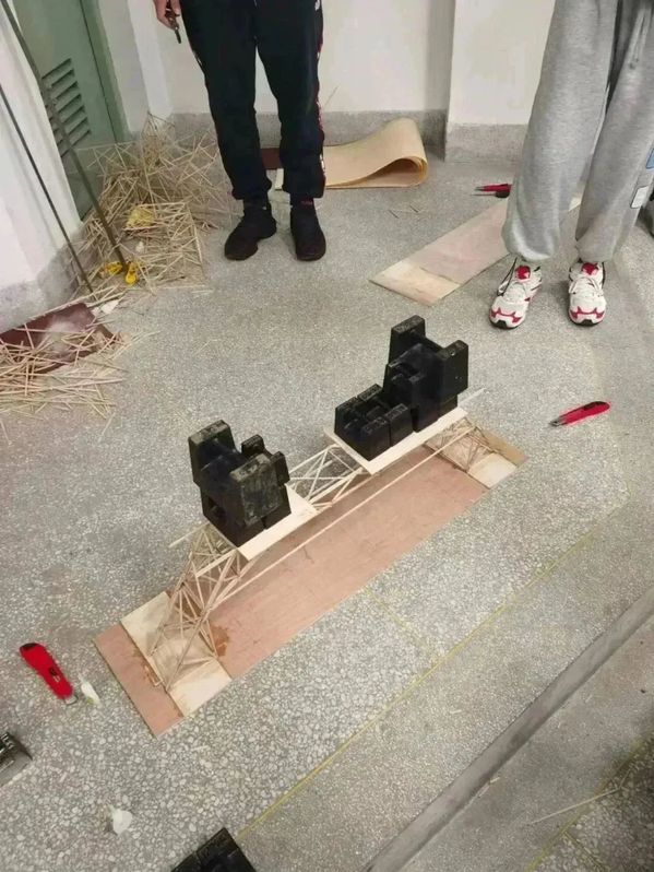 大学时开始时我就对竞赛十分感兴趣,大一时,我出于兴趣和夏永彬、刘祥东、叶子莹一起参加了第十三届奇思妙想结构设计大赛,这对连理论力学都没学过、结构设计方面知识并不了解的我们来说无疑是巨大的挑战,但在学长、学姐的指导下,我们通过一个又一个小模型、小构件的练习,虽然过程中熬了不少时间、手上每次都沾上了胶水,但还是在比赛前做好了我们的桁架桥模型,在60g的自重下加上了三级加载,并拿下了一等奖。这算是我竞赛的启蒙,也为我之后屡败屡战的竞赛经历提供了信心和勇气。