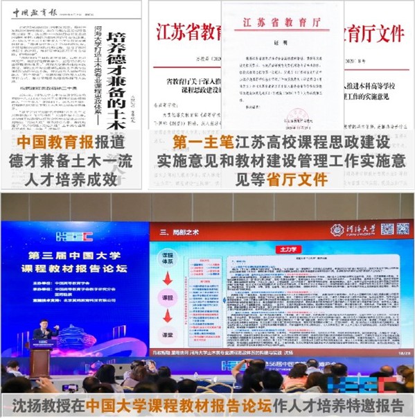 本学科主持建设有全部五类国家一流课程,并实现专业核心主干课国家一流课程的全覆盖。主持国家首批新工科项目成为全国唯三、江苏唯一验收优秀的土建水海类项目,并牵头教育部首批虚拟教研室“土木工程课程群虚拟教研室”,协同全国43所高校土木及相关专业开展课程建设。第一主笔江苏高校课程思政建设实施意见和教材建设管理工作实施意见2份全省文件;土木类专业课程思政体系成为江苏课程思政示范专业指标体系建构蓝本。近6年受中国高教学会等110余家单位邀请,在中国大学课程教材报告论坛等大会作人才培养体系建设相关特邀报告140余场,辐射全国500余所高校。