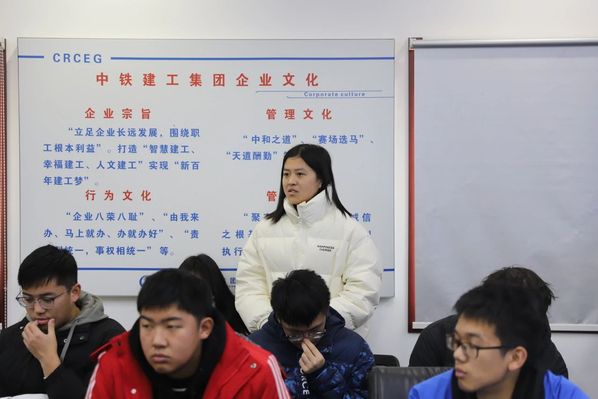 随着丁导师介绍完毕,企业有关人员向同学们介绍了中铁建工集团南京分公司负责的部分项目,比如南京火车站,国家电网公司,上海九星城等等,又通过视频动画展示了项目的施工过程,使同学们对施工流程有了直观了解。