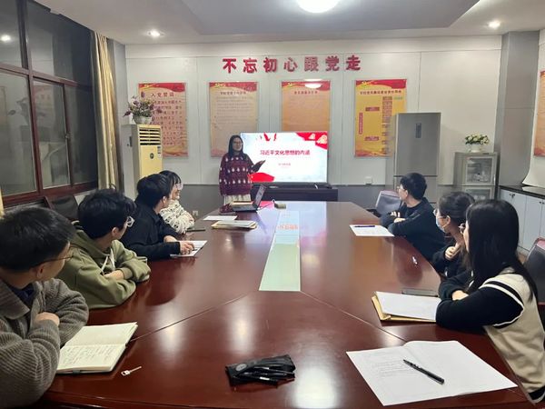 12月2日,砼研新语青年学习社开展主题为“习近平文化思想的内涵“学习活动。吕晨希同学从提出背景、提出意义、核心内容以及关键行动四个方面阐述了习近平文化思想的内涵。面向未来,在习近平文化思想指引下,中华儿女必将以高度的文化自信凝聚民族复兴力量,共同创造属于我们这个时代的新文化,谱写中华民族现代文明新华章。