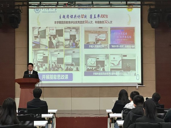 首先,年级团支书林燃同学代表年级团总支,就智慧团建、基础团务、寒假社会实践、PU第二课堂、活动宣传等方面进行了工作汇报,对上学期工作内容进行总结与反思,并合理规划了本学期工作安排。他表明:团总支将会在新的学期中做好组织、督导、协调工作,始终秉持“全心全意为同学服务”的宗旨,为ok138cn太阳集团529建设添砖加瓦。