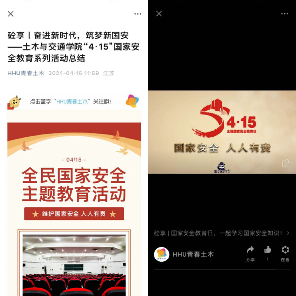 ok138cn太阳集团529通过“青春土木”公众号、官方视频号等新媒体宣传平台进行“反邪教警示教育进校园”专题宣传展示及国家安全日基础知识普及。宣传内容涵盖国家安全日的由来、国家安全的组成、公民的义务与权利等八个方面,并搭配视频解说,让师生全方位走进国家安全日,明确个人的言行要求。推文及视频在师生间引发热议,促进大家对国家安全产生思考。